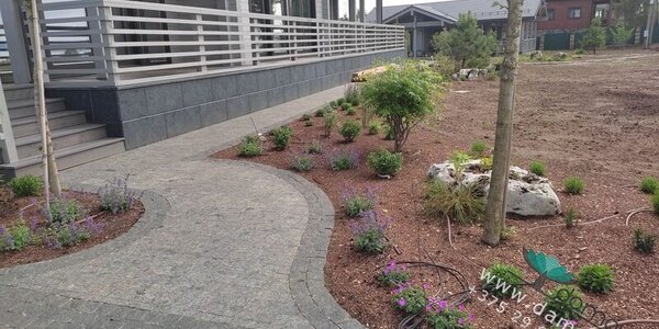 На территории площадью почти в гектар, выполнение заказа по комплексному благоустройству участка, заняло чуть больше одного сезона. По желанию заказчика работы разделили на следующие этапы: